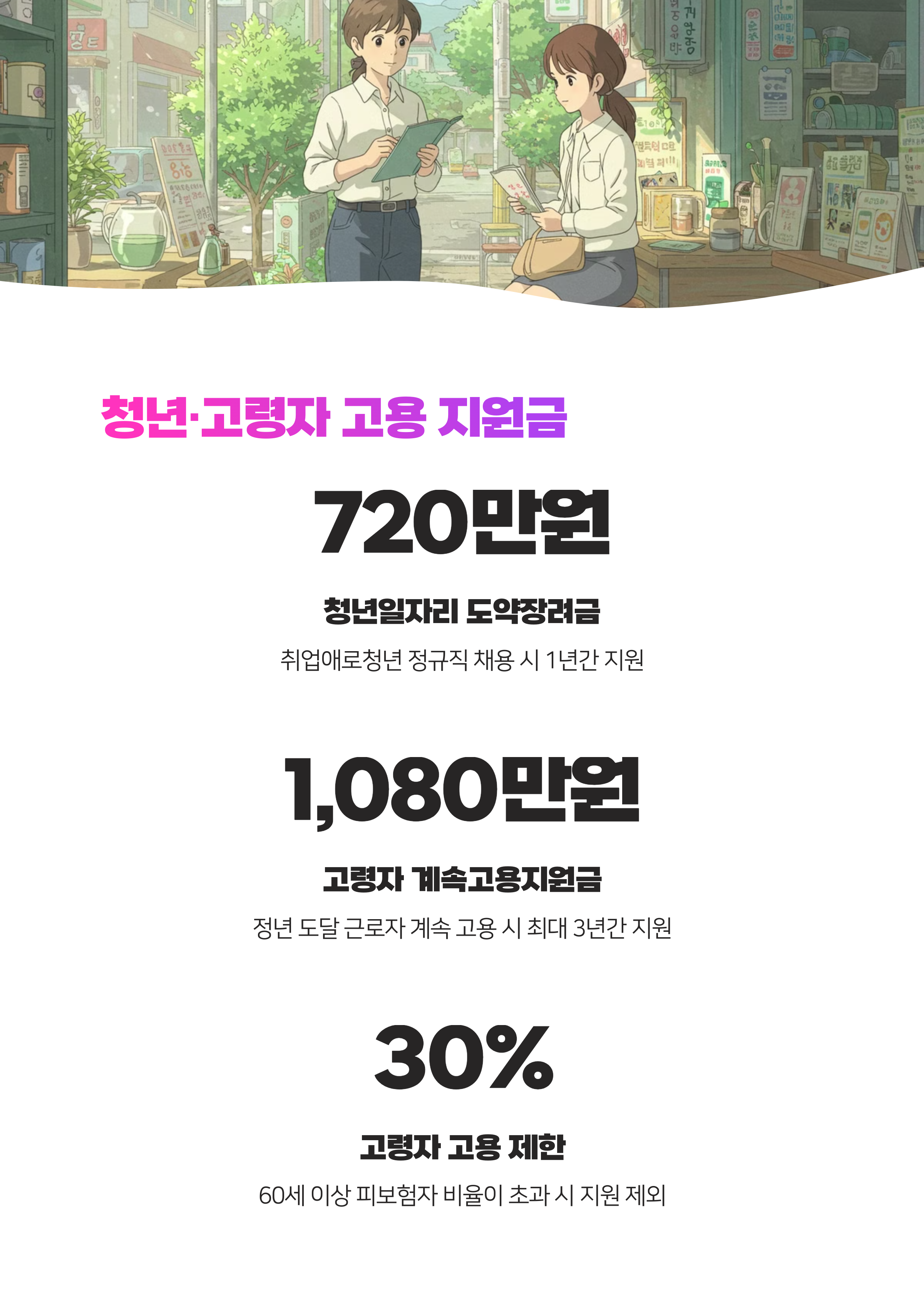 | 청년·고령자 고용 | 최대 720만원~1,080만원 지원 |
