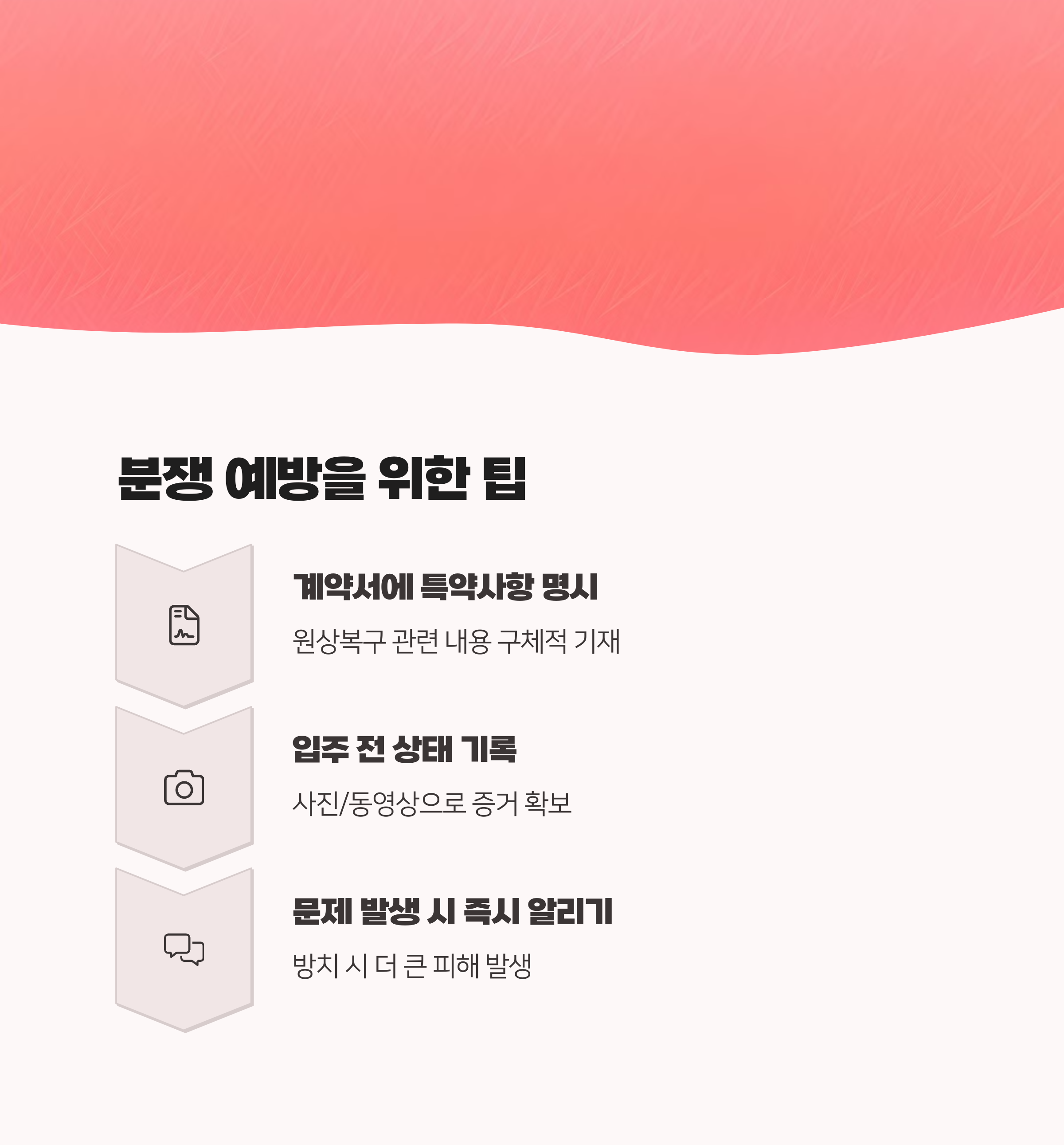 전월세 계약을 하고 살다 보면 어느새 계약 만료일이 다가오게 되는데요. 이때 가장 신경 쓰이는 부분이 바로 '원상복구'입니다. 특히 보증금 반환과 직결되어 있어 세입자와 집주인 사이의 주요 분쟁 원인이 되기도 합니다.
