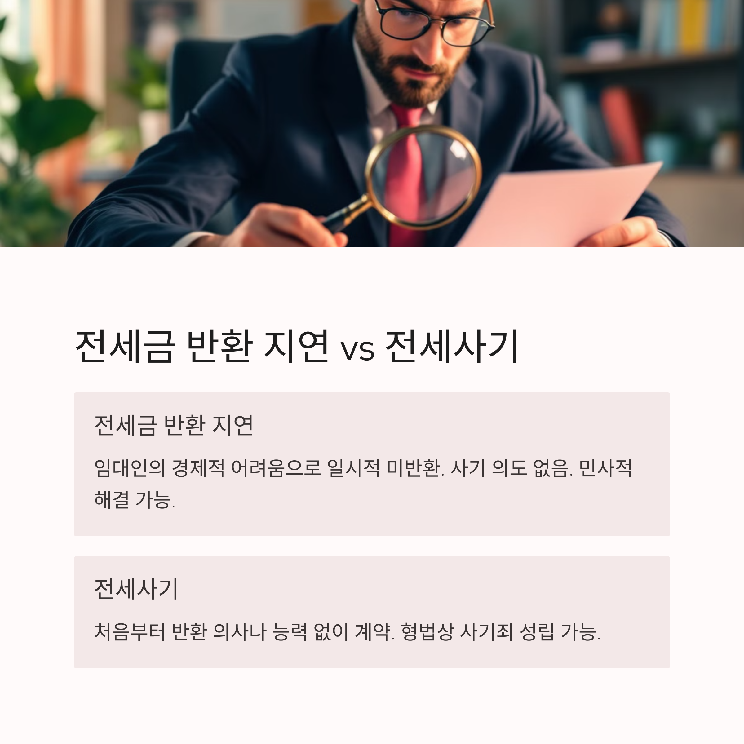 요즘 부동산 시장이 불안정해지면서 전세금 반환 문제로 고통받는 세입자들이 늘고 있어요. 전세금을 제때 돌려받지 못하는 상황에서 단순한 반환 지연인지, 아니면 전세사기인지 구분하는 것이 중요합니다. 두 상황에 따라 대응 방법과 법적 처리 과정이 달라지기 때문이에요.