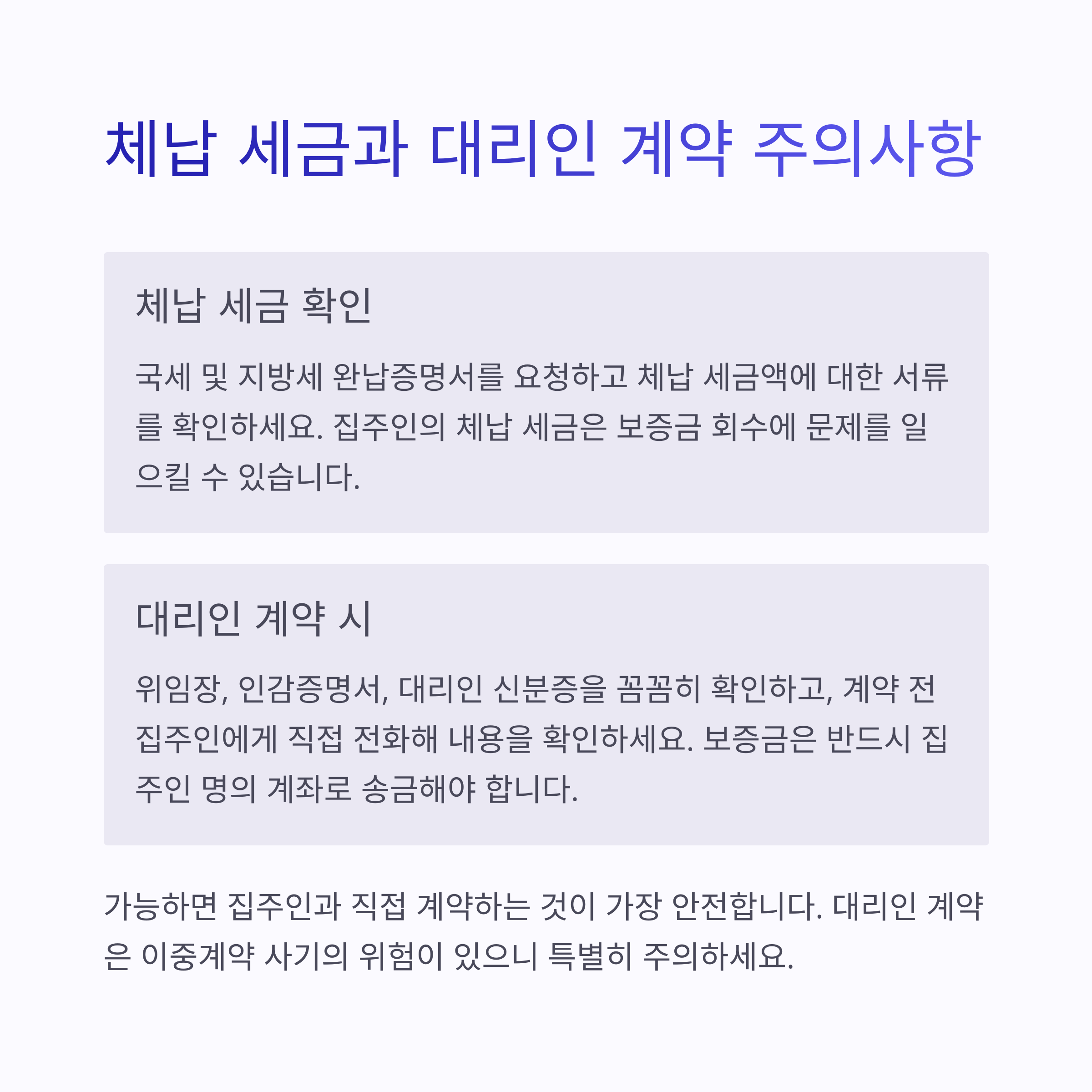 집주인의 체납 세금이 있으면 추후 보증금 회수에 문제가 생길 수 있어요.
