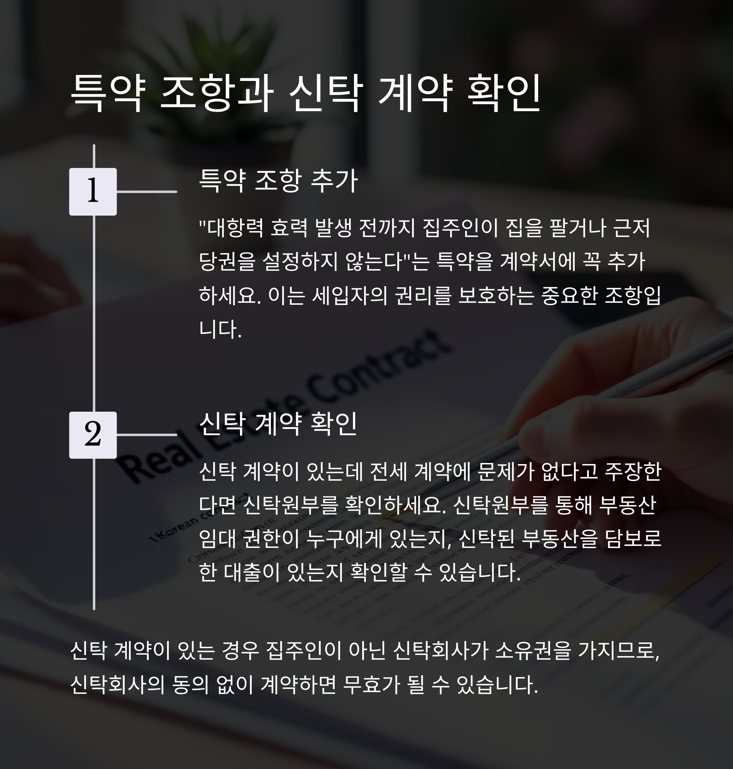 세입자의 권리를 보호하기 위한 특약 조항을 계약서에 꼭 넣어야 해요.