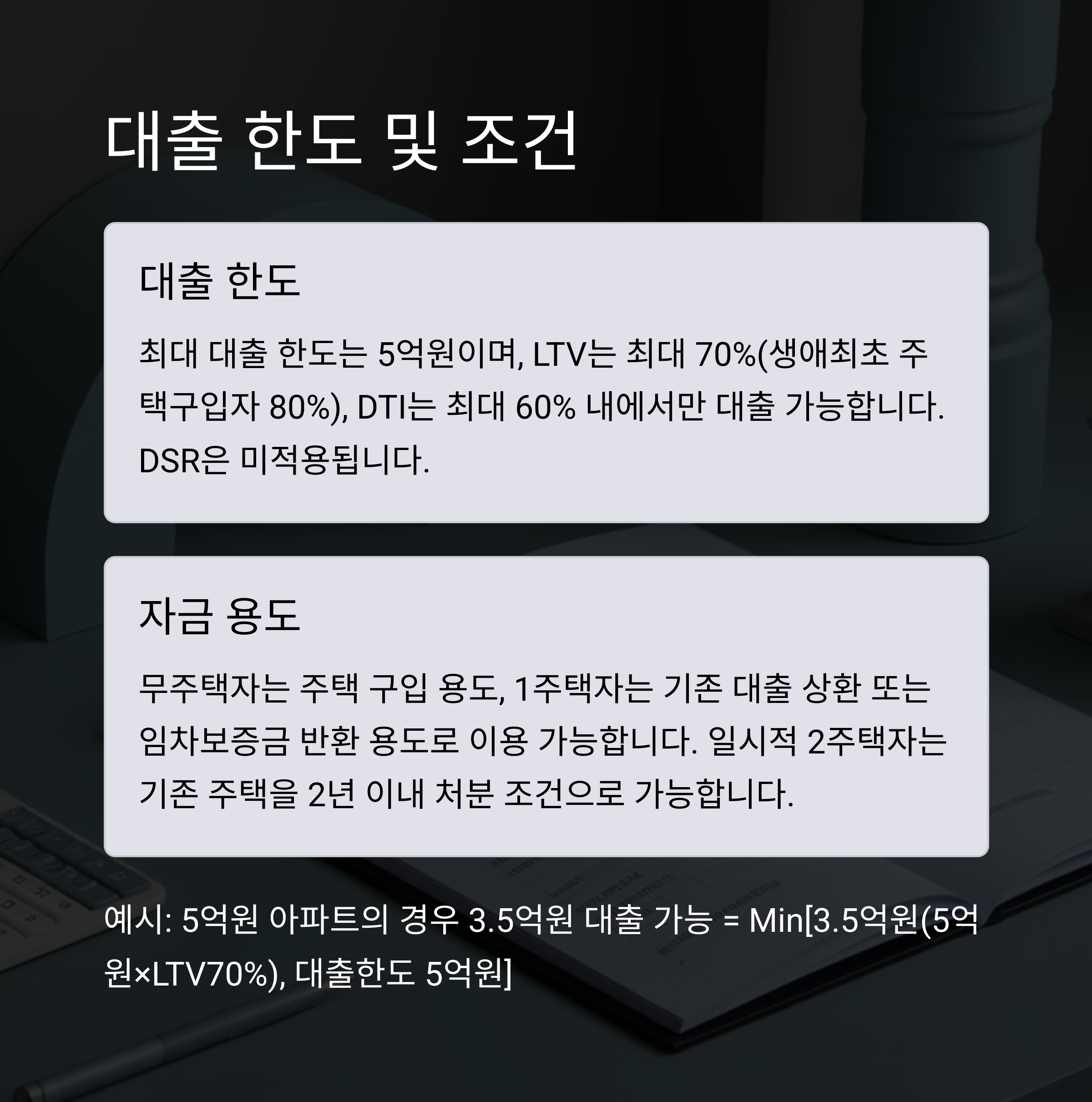 - 대출 기간 동안 1주택 유지조건이 엄격히 적용됩니다.