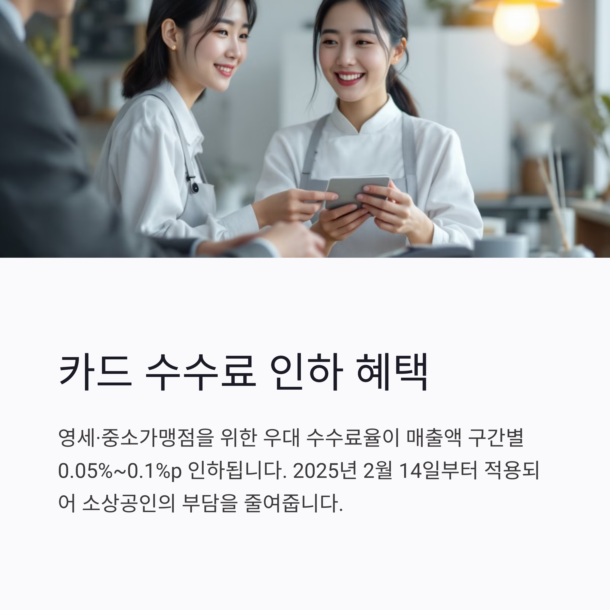 영세·중소가맹점을 위한 우대 수수료율이 인하됩니다.
