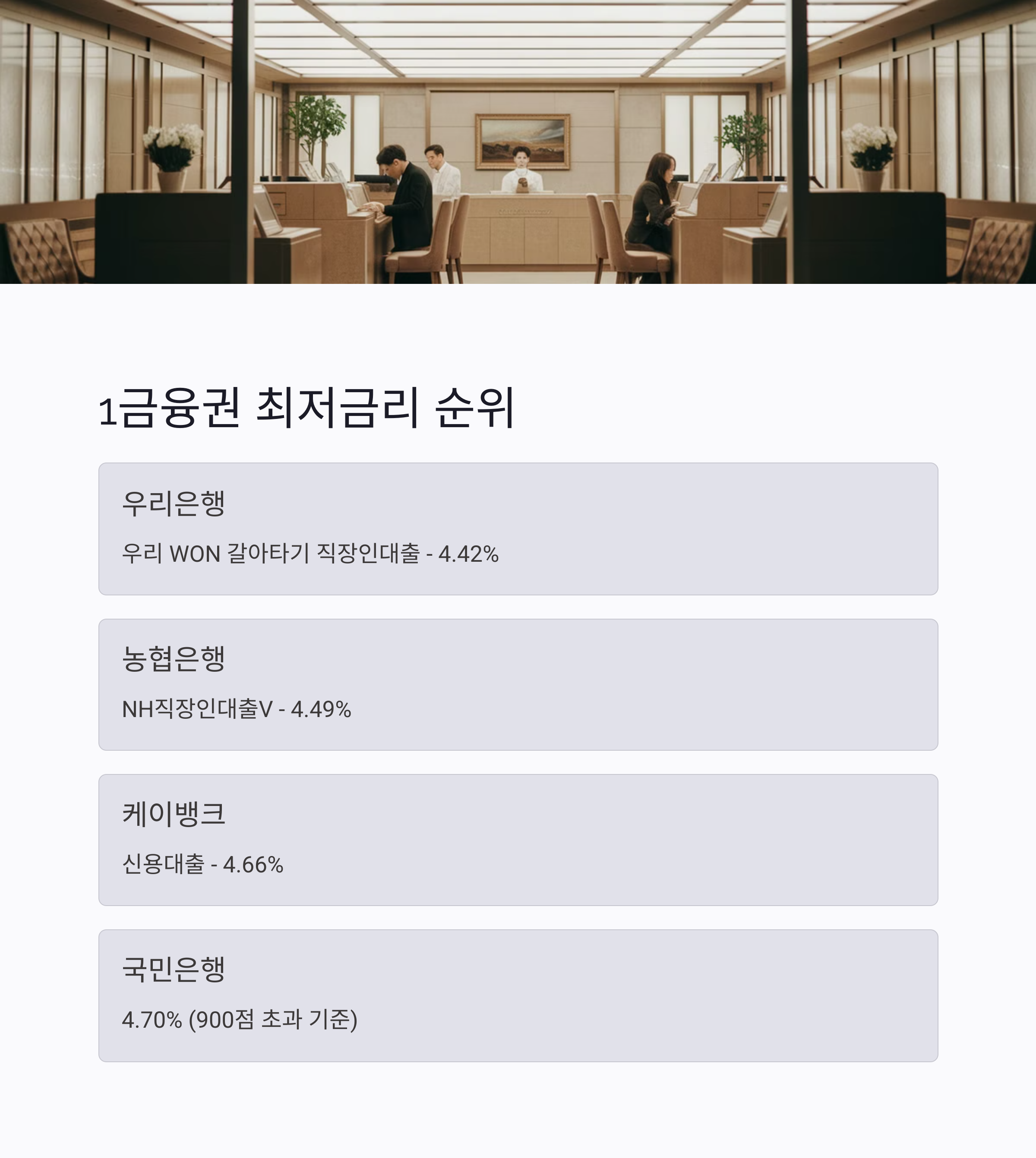 - 여러 금융사 비교하기: 금융감독원, 은행별 공식 사이트, 대출 비교 플랫폼을 이용해 비교하세요.